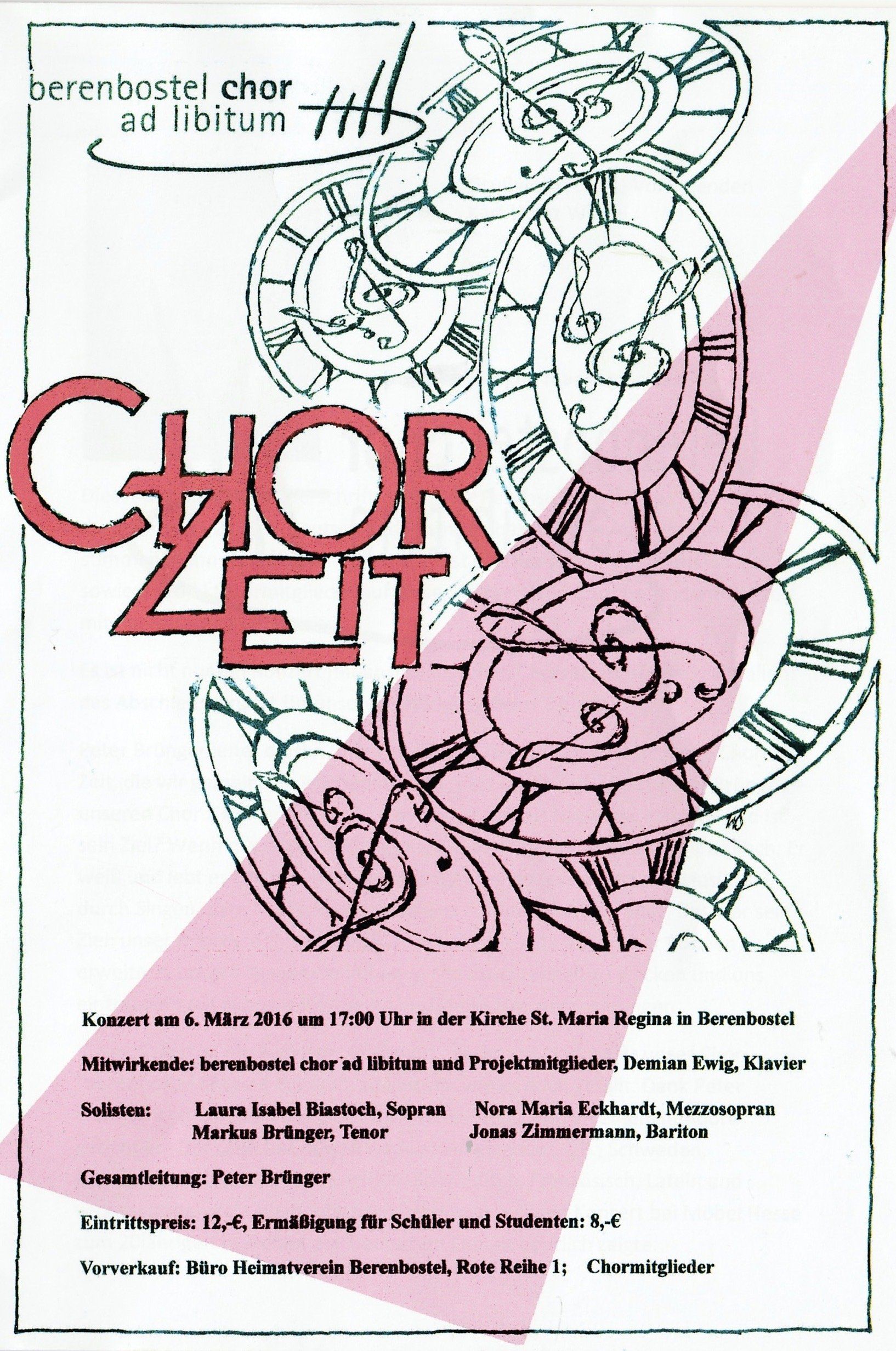 Der Begriff Zeit hat vielfältige Bezüge nicht nur zur Chormusik, sondern ist ein grundlegendes Phänomen in der Musik. Es gibt einen Anfang und ein Ende, selbst Pausen sind ein wichtiges Gestaltungsmerkmal.