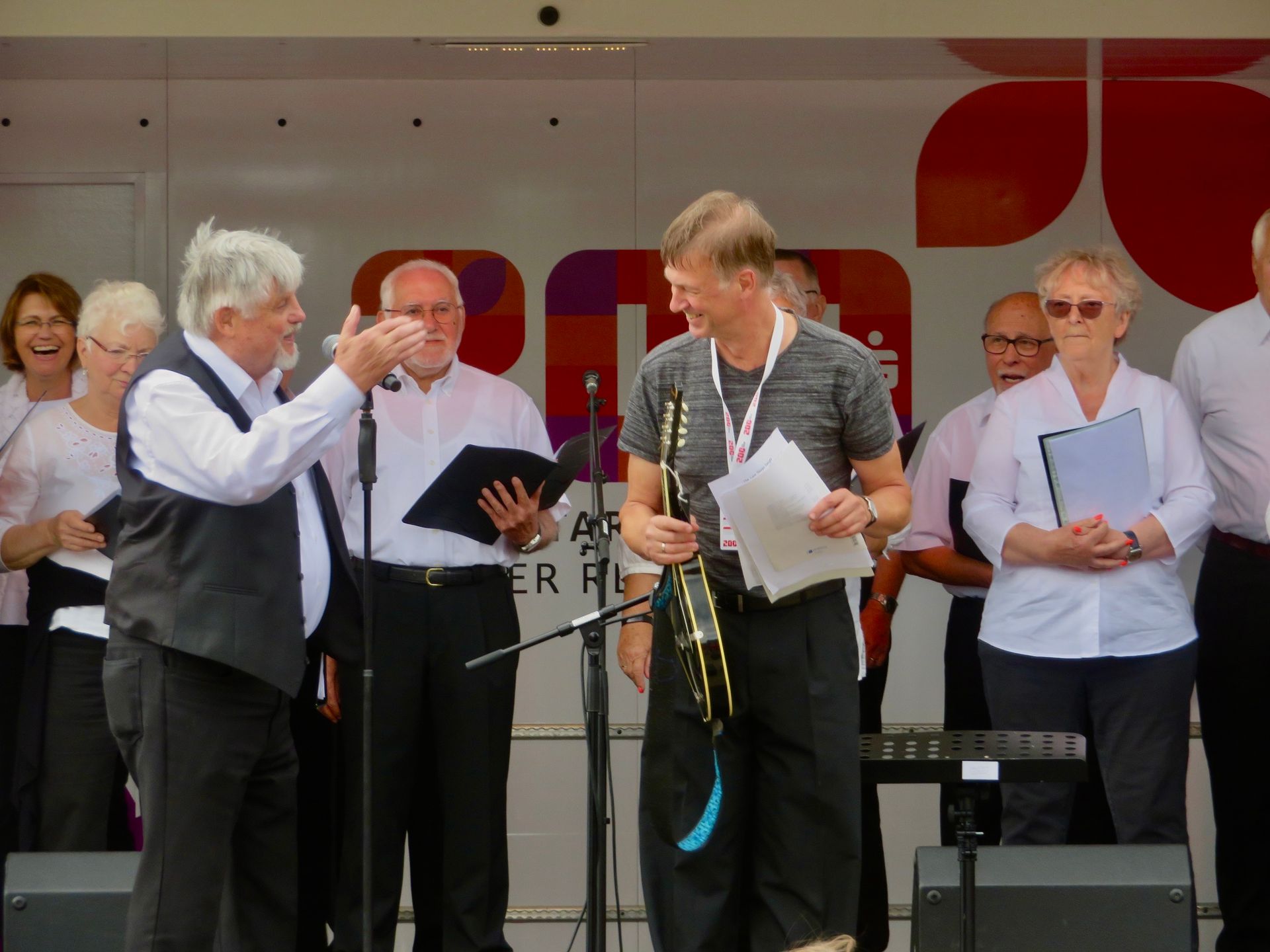 Chorleiter Albrecht Drude rief dem Chor zu: ”Ihr ward großartig bei den Auftritten!